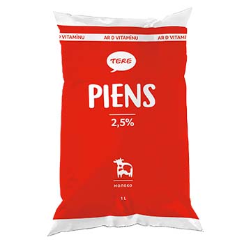 Piens Tere ar D vit.2.5% 1l politpaka